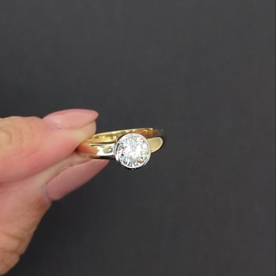 - Sleek and classic 14k yellow and white gold solitaire setting