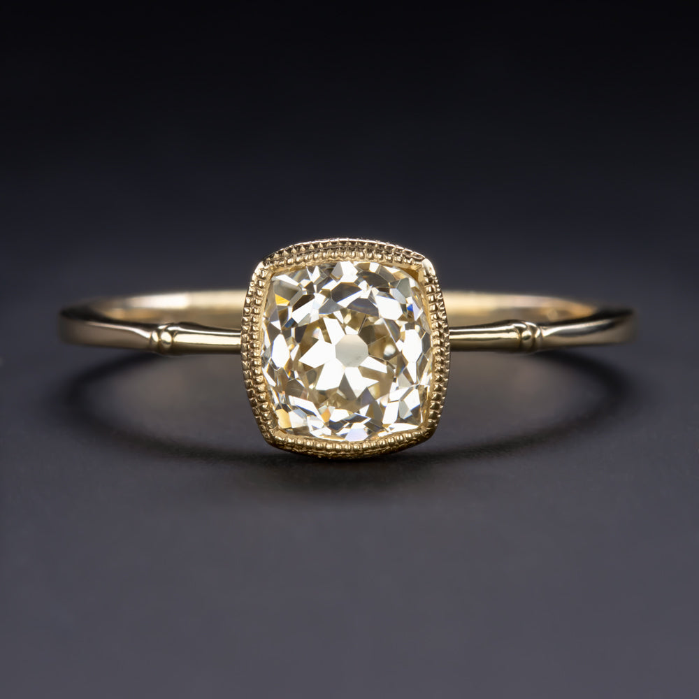 1.27ct L-M VS2 OLD MINE CUT DIAMOND ENGAGEMENT RING VINTAGE STYLE SOLITAIRE GOLD