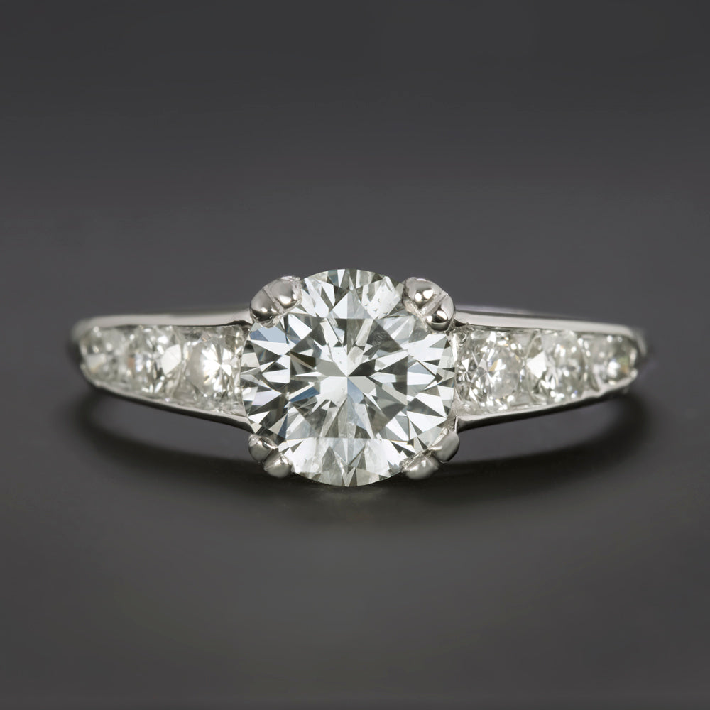 This gorgeous and classic engagement ring combines eye catching impressive sparkle with an eternally stylish design. The substantial 1.30ct center diamond is set in a classic platinum setting with diamond accents on the shoulders. The effect is glamorous yet elegant and refined