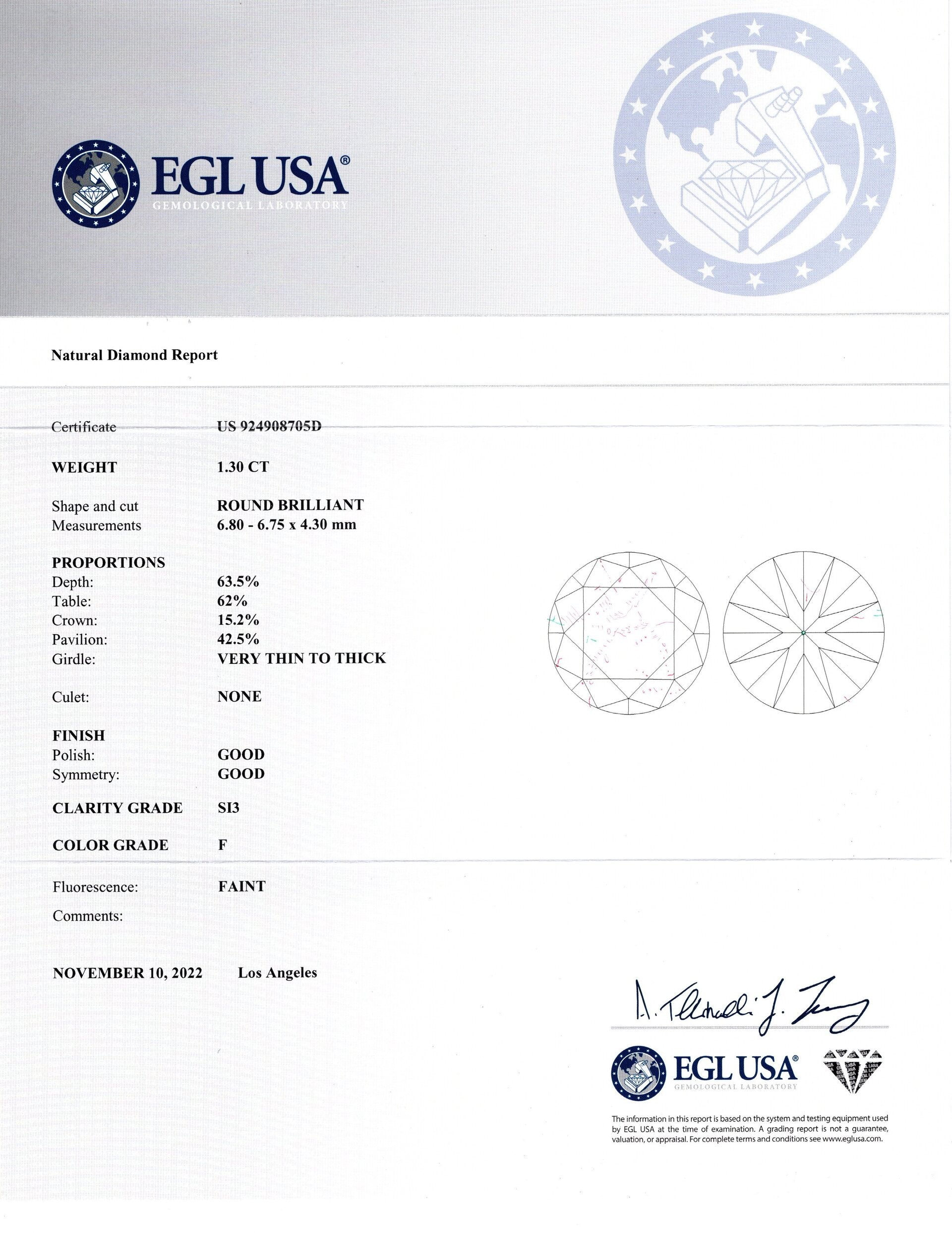 1.30ct CERTIFIED DIAMOND ENGAGEMENT RING ROUND BRILLIANT CUT NATURAL CLASSIC