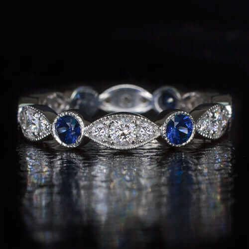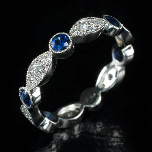 1.3ctw SAPPHIRE DIAMOND WEDDING BAND ETERNITY VINTAGE STYLE STACKING RING 14K