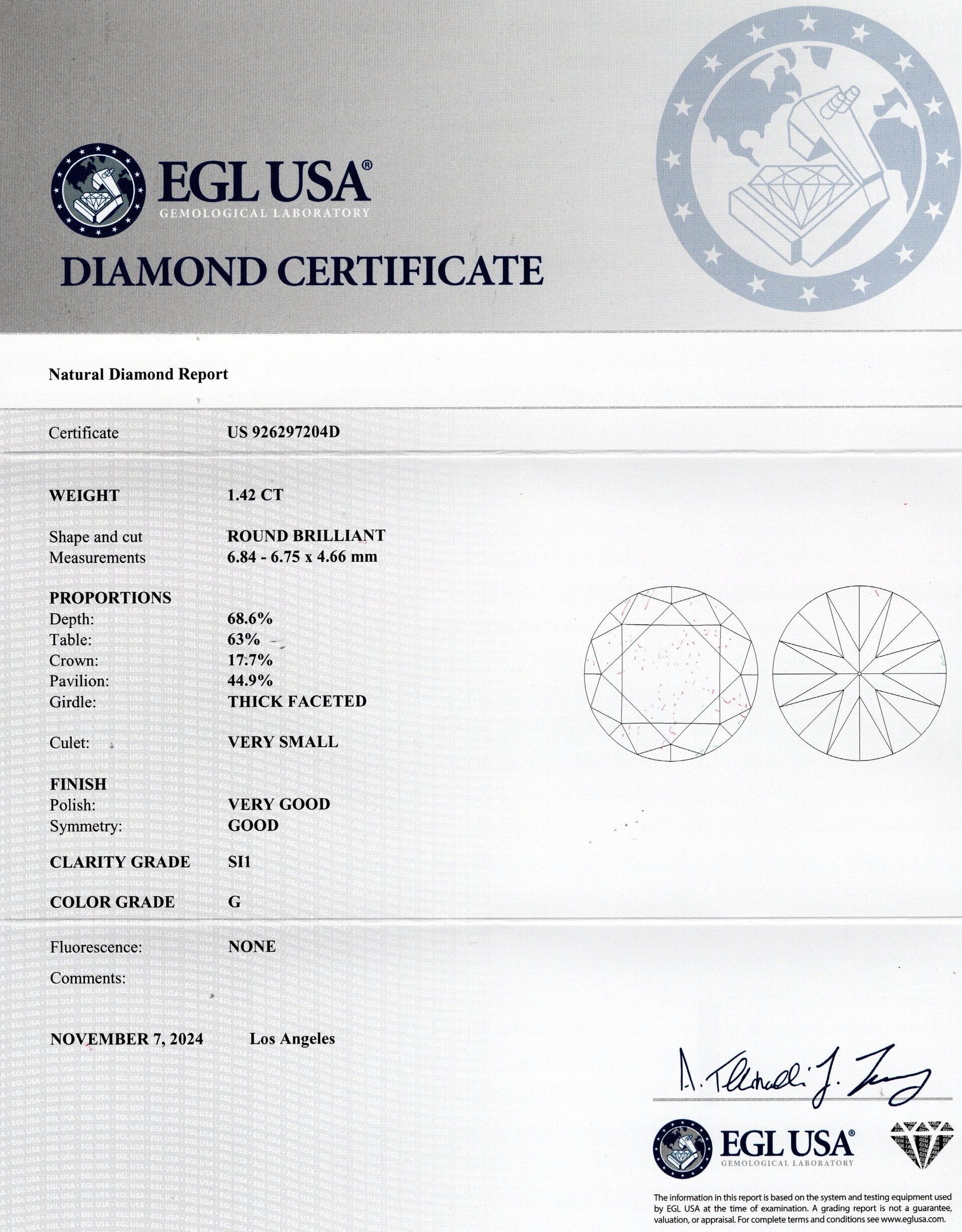 1.42c CERTIFIED DIAMOND ENGAGEMENT RING G SI1 VINTAGE STYLE ROUND CUT WHITE GOLD