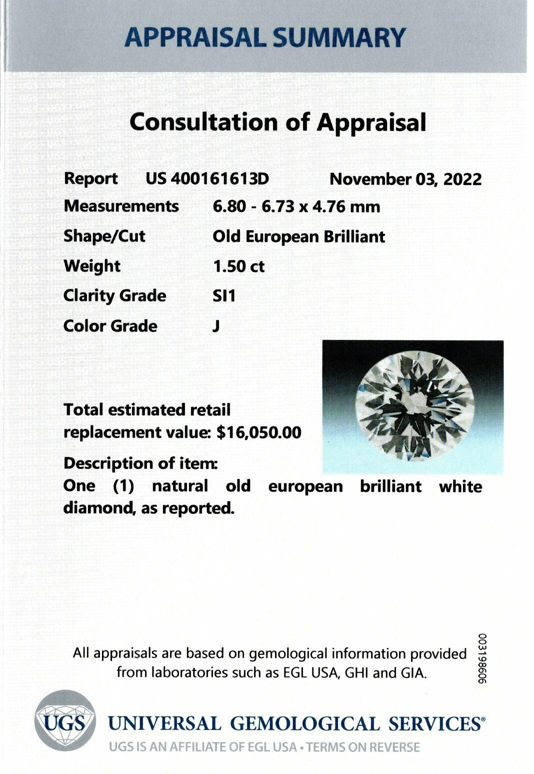 1.5 CARAT CERTIFIED J SI1 OLD EUROPEAN CUT DIAMOND ENGAGEMENT RING VINTAGE STYLE