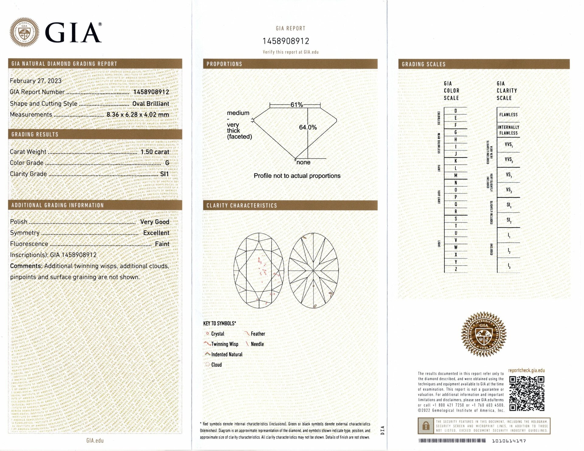 1.5 CARAT OVAL CUT DIAMOND GIA CERTIFIED G SI1 LOOSE NATURAL ENGAGEMENT 1.5ct