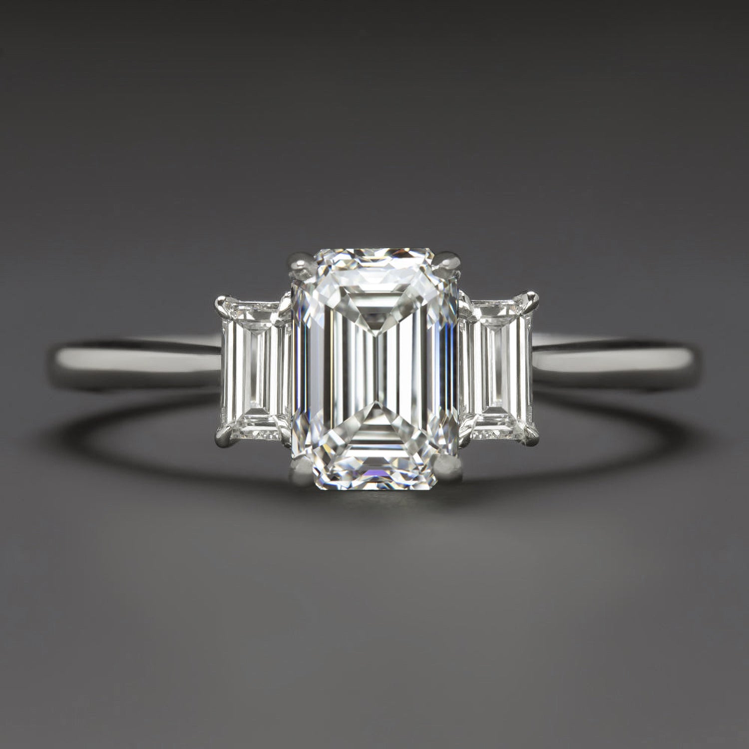 1.5ct DIAMOND ENGAGEMENT RING GIA CERTIFIED H VS1 PLATINUM 3 STONE EMERALD CUT