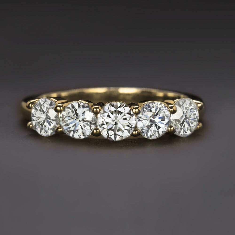 1.5ct GIA CERTIFIED DIAMOND WEDDING RING YELLOW GOLD 5 STONE BAND EXCELLENT CUT