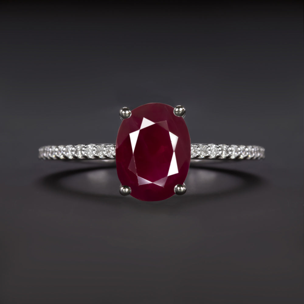 1.60ct RUBY DIAMOND COCKTAIL RING OVAL SHAPE CUT THIN PAVE BAND 14k WHITE GOLD