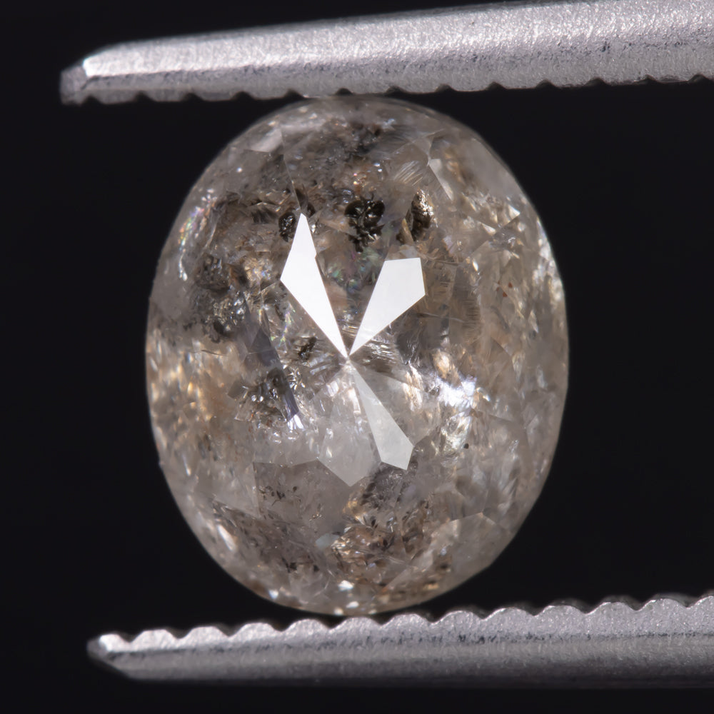 1.78ct NATURAL DIAMOND OVAL SHAPE ROSE CUT RUSTIC RAINBOW SALT AND PEPPER LOOSE