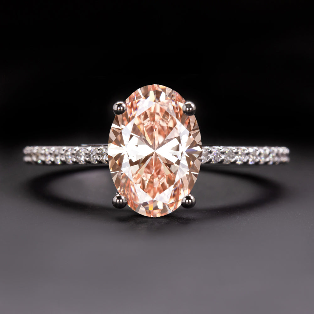 1.81ct FANCY PINK LAB CREATED DIAMOND ENGAGEMENT RING OVAL SHAPE 14k WHITE GOLD