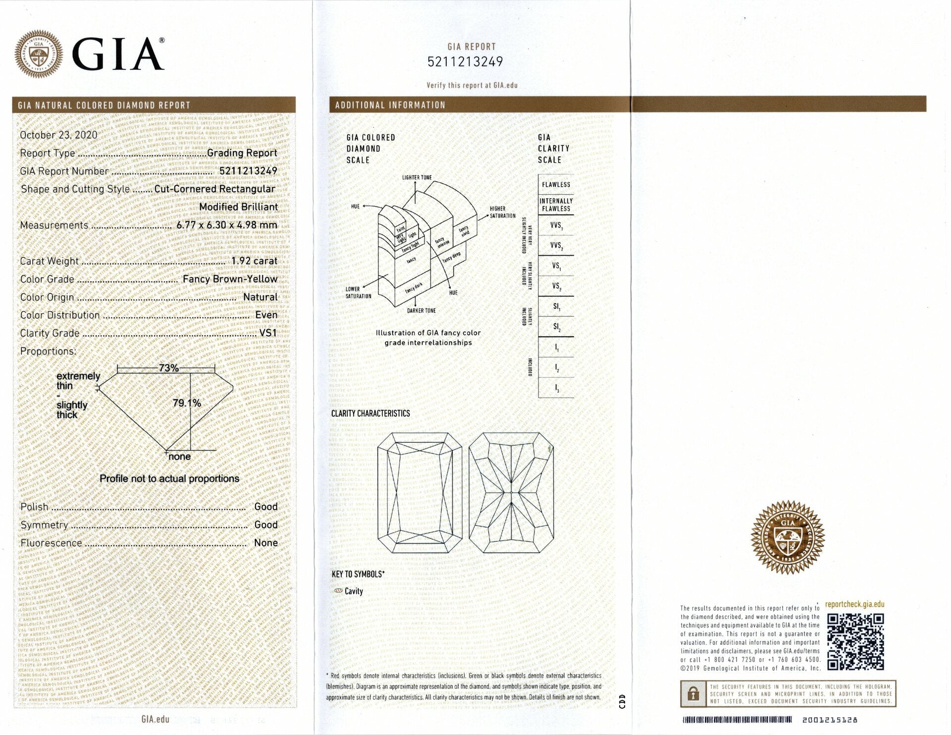 1.92ct GIA CERTIFIED FANCY BROWN-YELLOW VS1 DIAMOND RADIANT CUT LOOSE 2 CARAT