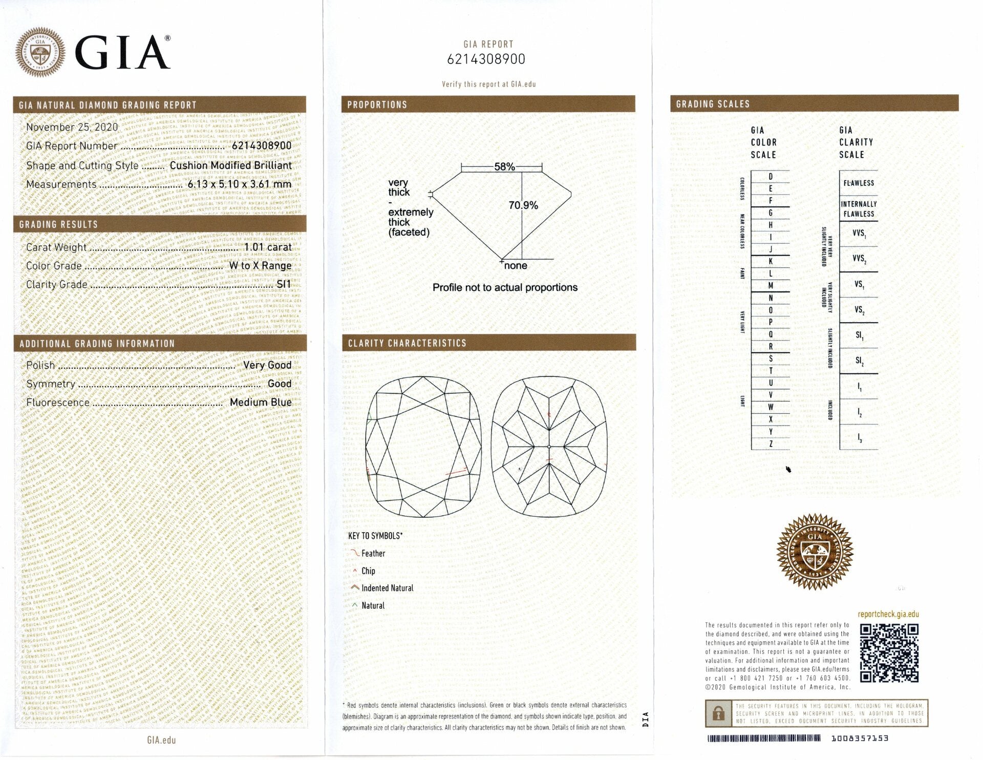 This stunning 1.01ct cushion cut diamond has a cheery yellow color, an eye clean appearance, and lively brilliance! The diamond is certified by GIA, the world’s premier gemological authority. Graded W-X for color under GIA’s rigorous standards, the diamond faces up a beautiful soft canary yellow with a lively natural brilliance. It truly looks very close to Fancy Light Yellow, but at a fraction of the price. It is a true yellow color with no overtones; there is no brownish, greenish, etc... This gorgeous color would look stunning contrasted with bright white accent diamonds! The diamond received a grade of SI1 for clarity, and it is completely eye clean. They few inclusions are much too small to see with the naked eye. The diamond’s cushion cut is a very stylish and sophisticated shape. It's elongated shape is very flattering on the finger. The cut is gorgeously lively and creates mesmerizing, eye catching sparkle! This diamond would make a stately and elegant center for an engagement ring, right hand ring or pendant.