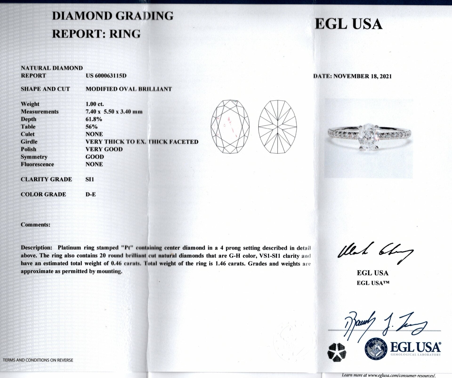 1 CARAT OVAL SHAPE DIAMOND ENGAGEMENT RING CERTIFIED D SI1 PLATINUM NATURAL 1ct
