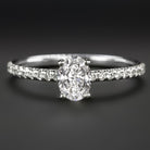 This stunning engagement ring displays fantastic sparkle with a vibrant oval cut diamond center and a diamond encrusted shank!