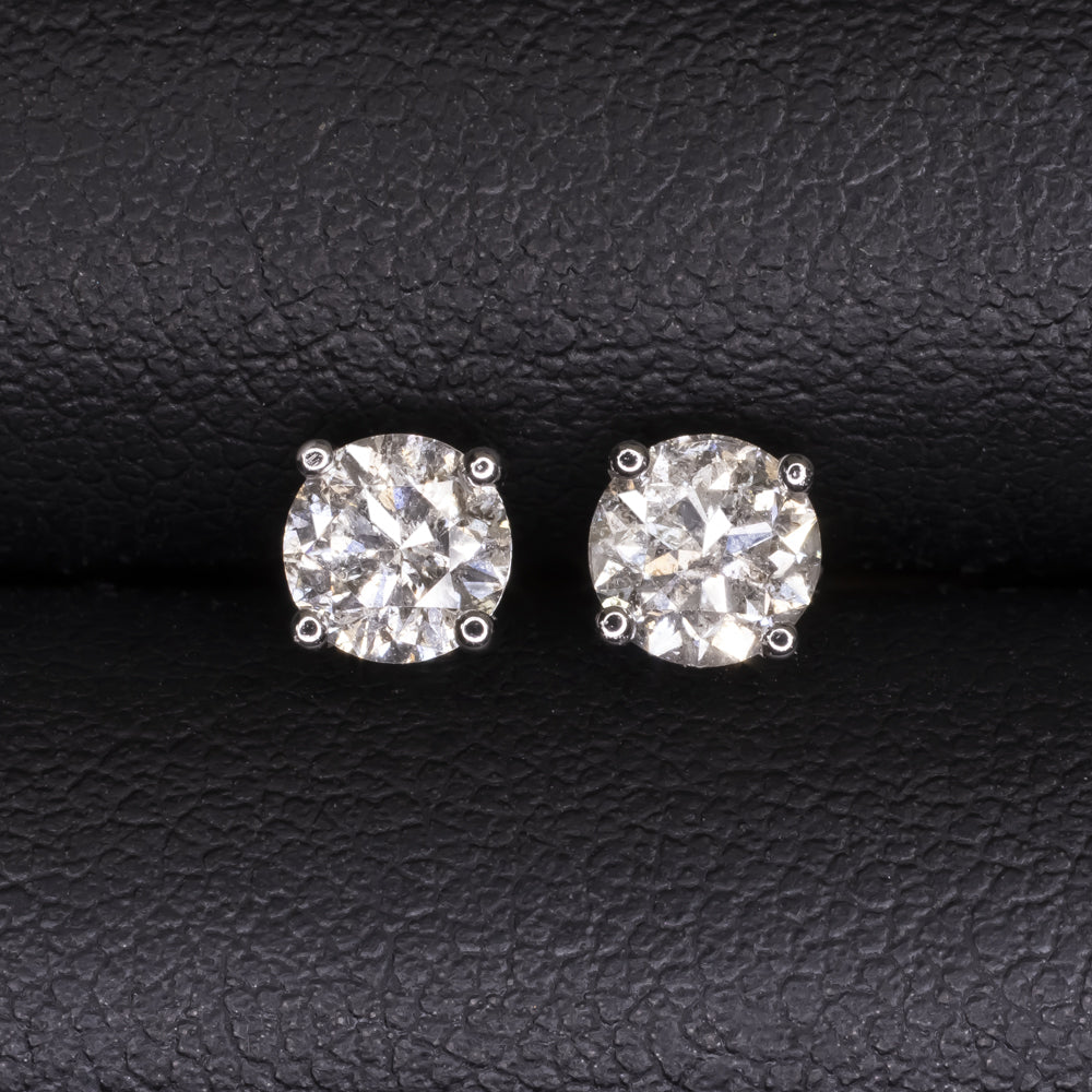1 CARAT VERY GOOD CUT NATURAL DIAMOND STUD EARRINGS 14k WHITE GOLD ROUND 1ct