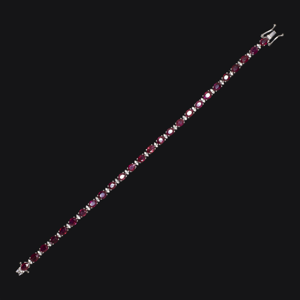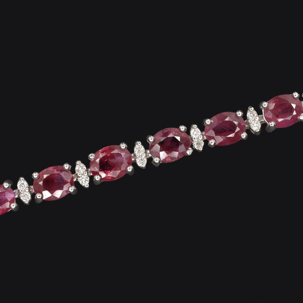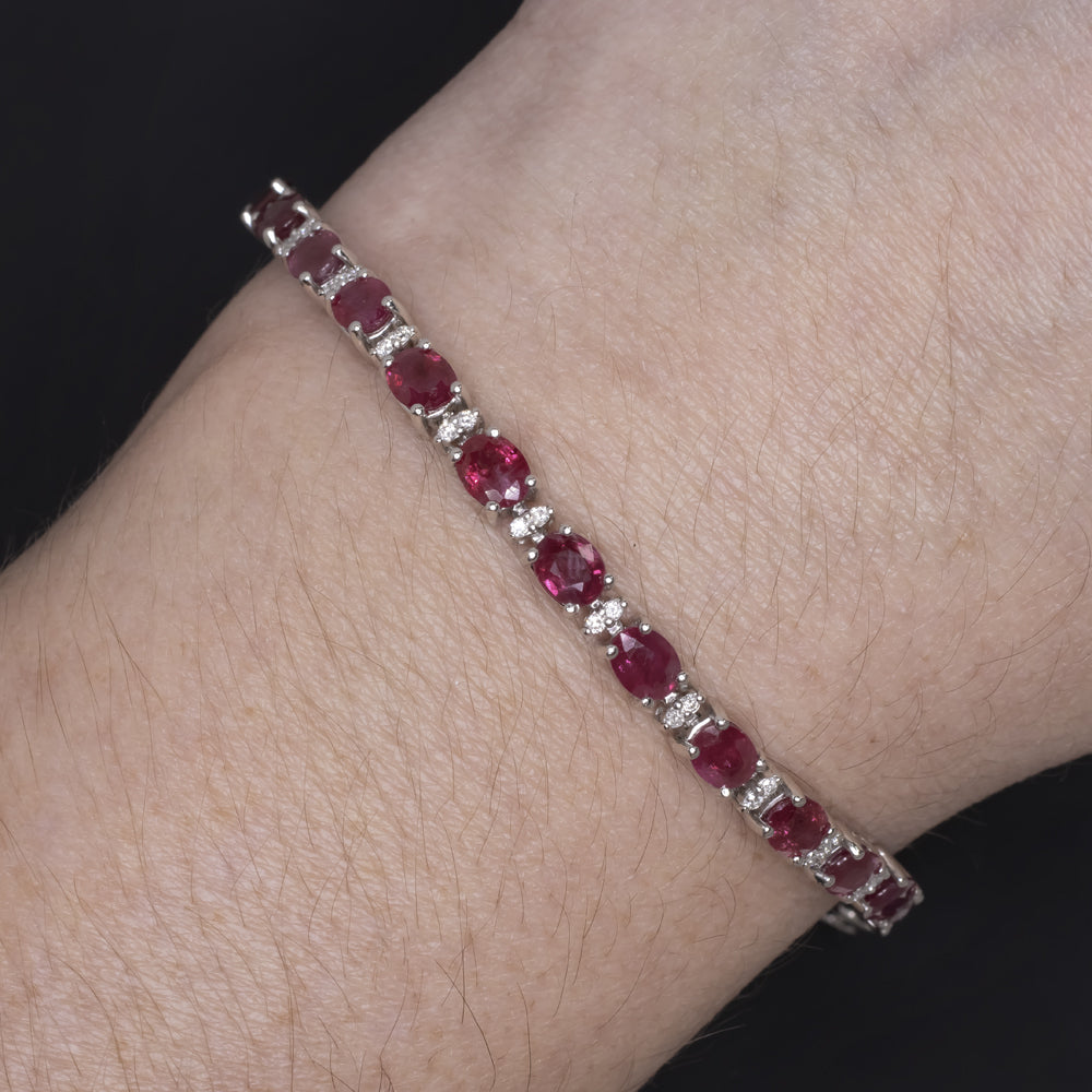 10.29ct RUBY DIAMOND BRACELET 18k WHITE GOLD TENNIS NATURAL OVAL SHAPE RED 10ct