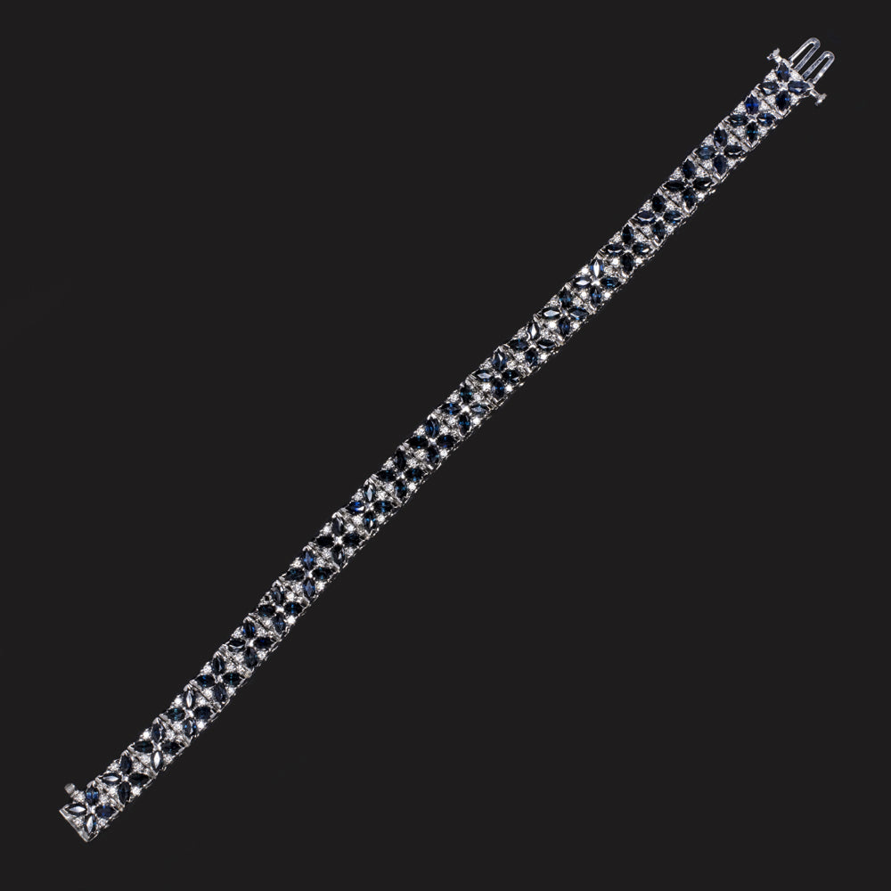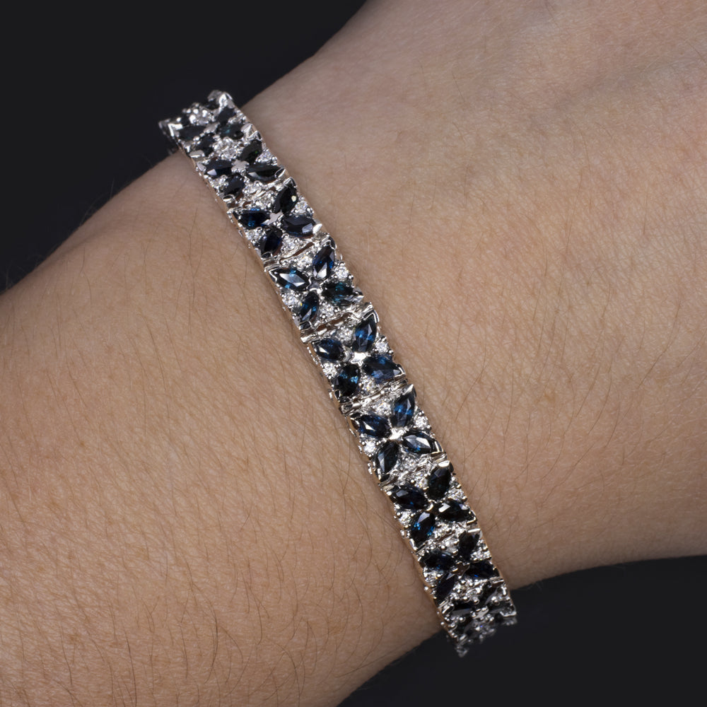 11 CARAT SAPPHIRE DIAMOND BRACELET 14k WHITE GOLD WIDE MARQUISE PATTERN BLUE