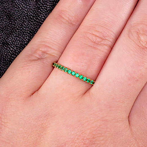 14K GOLD NATURAL RICH GREEN ONYX ETERNITY RING STACKABLE BAND THIN PAVE WEDDING