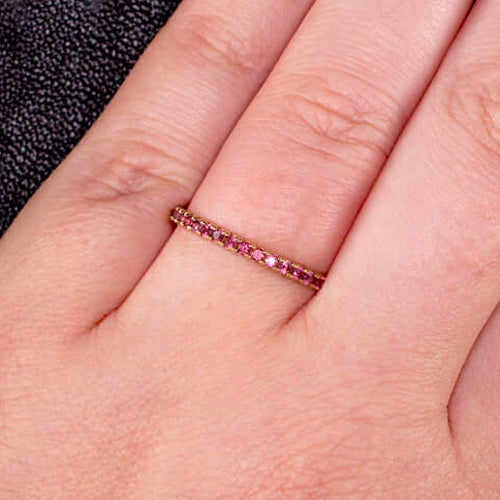 14K ROSE GOLD RHODOLITE GARNET ETERNITY RING STACKING BAND PINK PURPLE WEDDING