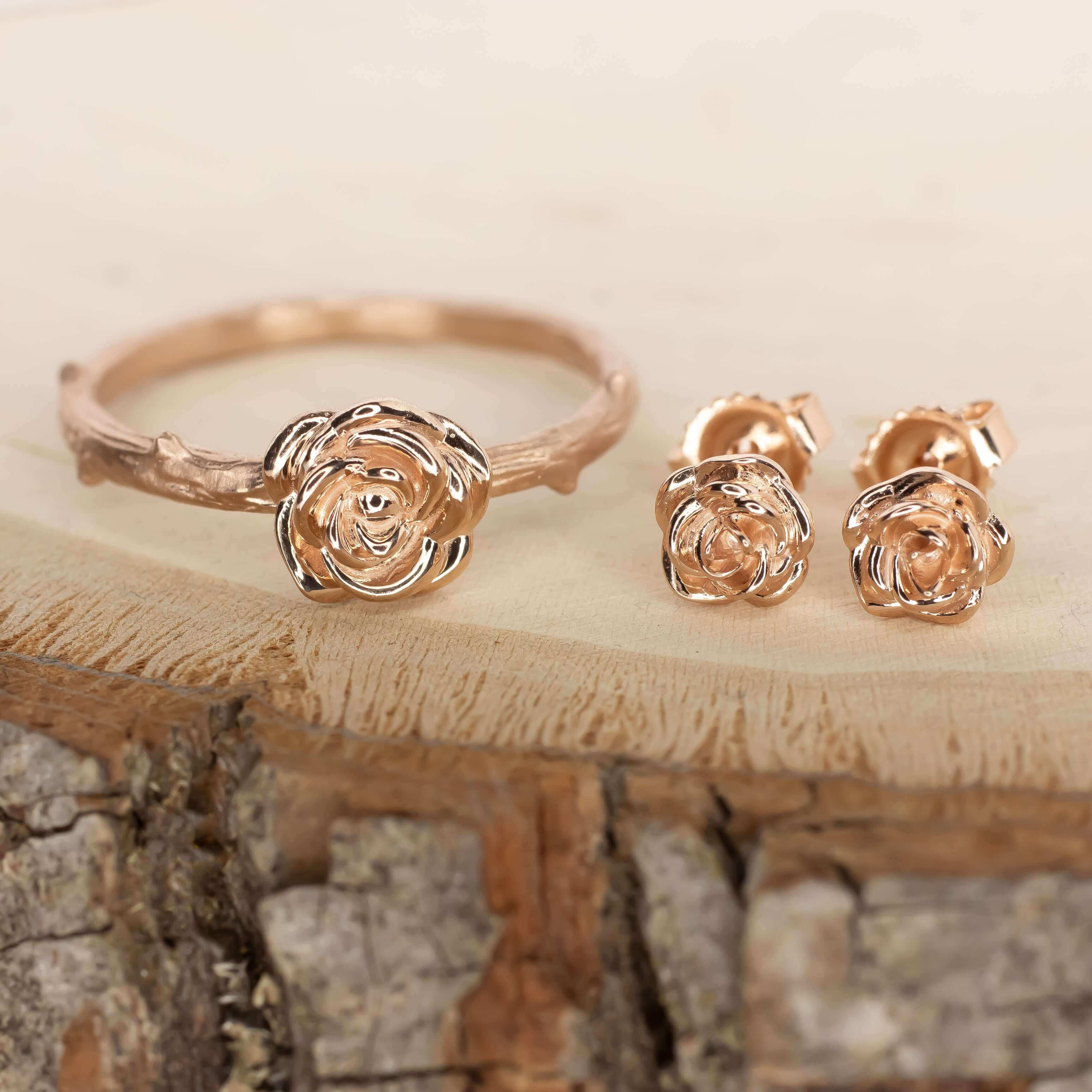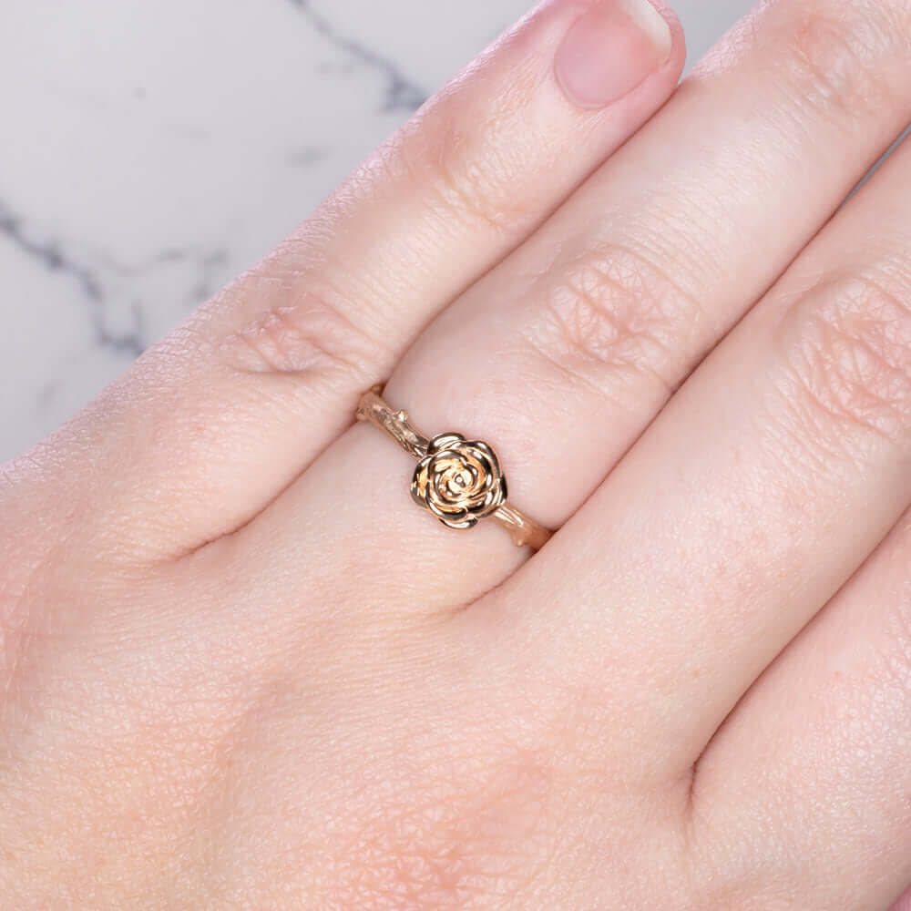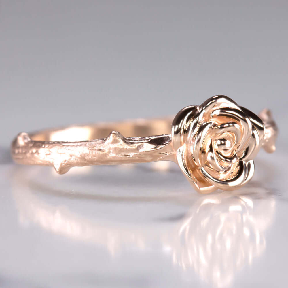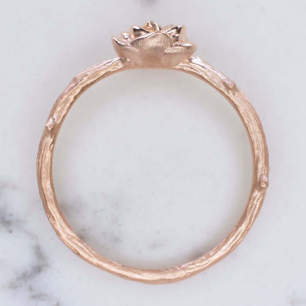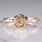 14k ROSE GOLD ROSE BLOSSOM RING FLOWER SOLITAIRE FLORAL BOTANICAL BRANCH VINE
