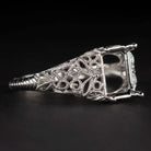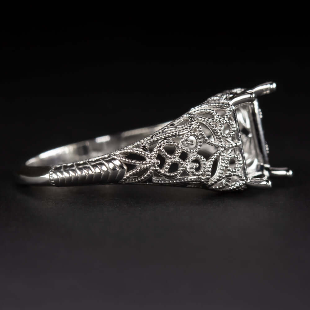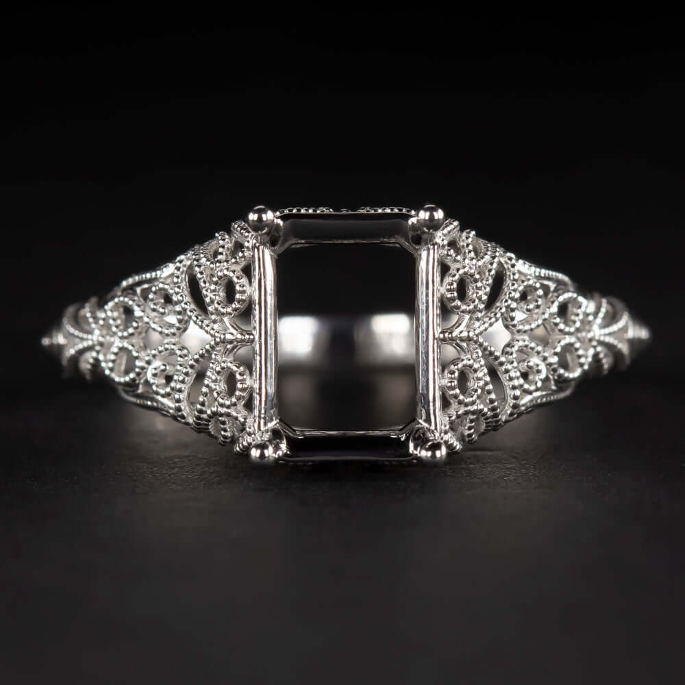 14k WHITE GOLD FILIGREE ENGAGEMENT RING SETTING 8x6 EMERALD CUT VINTAGE STYLE