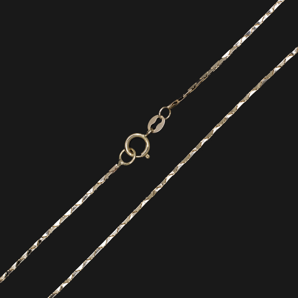 This 14k yellow triangle link chain has a unique look and catches the light beautifully!