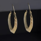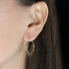 These elegant 14k yellow gold hoops have a faceted texture and engraved details for a unique touch while maintaining a classic aesthetic!