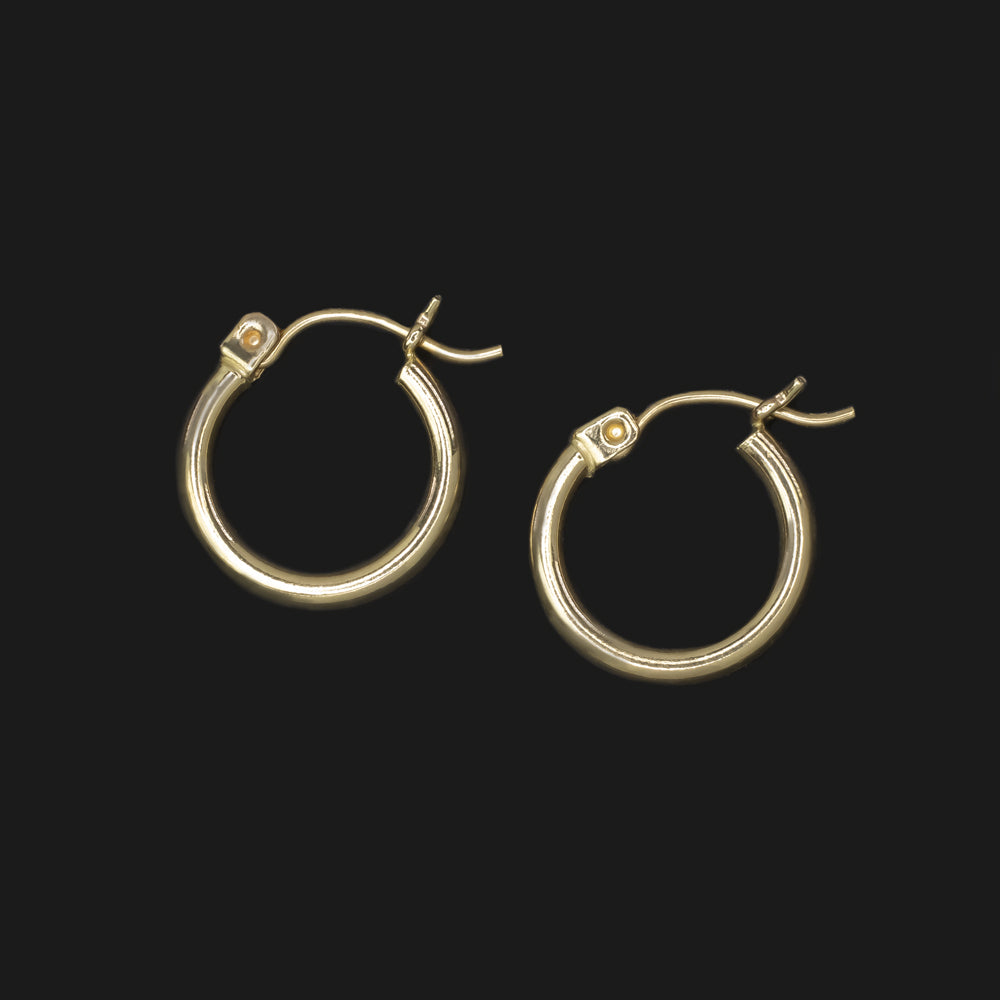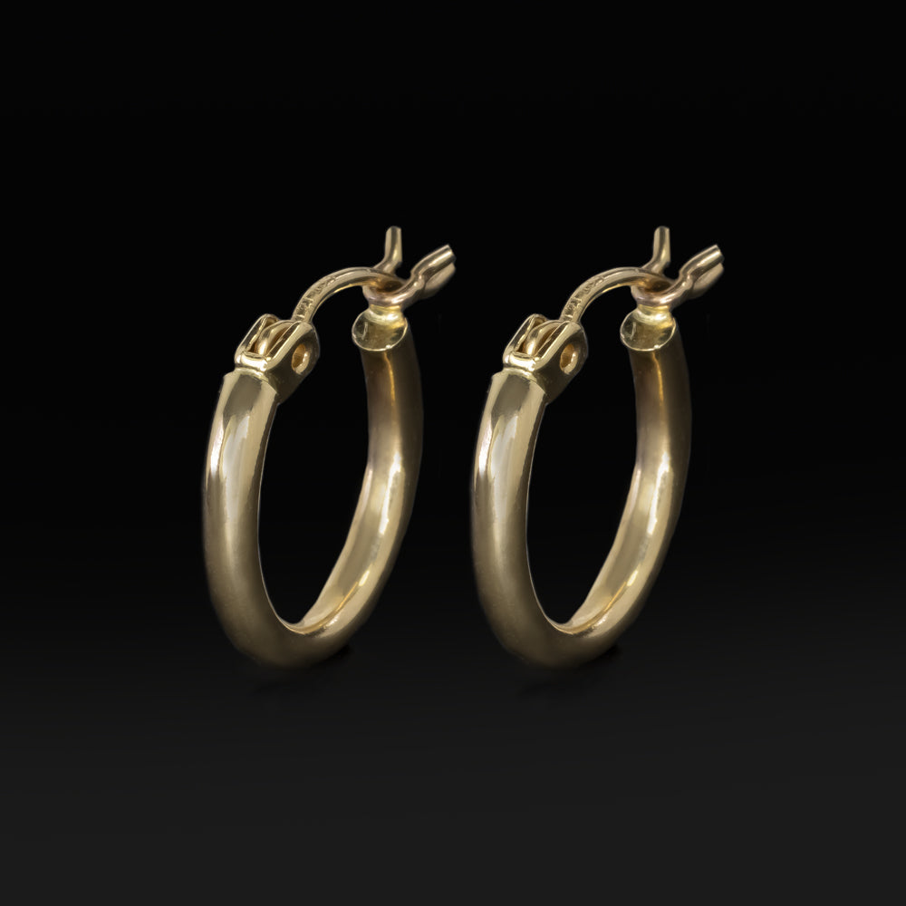 14K YELLOW GOLD SMALL HOOP EARRINGS MINIMALIST SIMPLE CLASSIC HUGGIE EVERYDAY