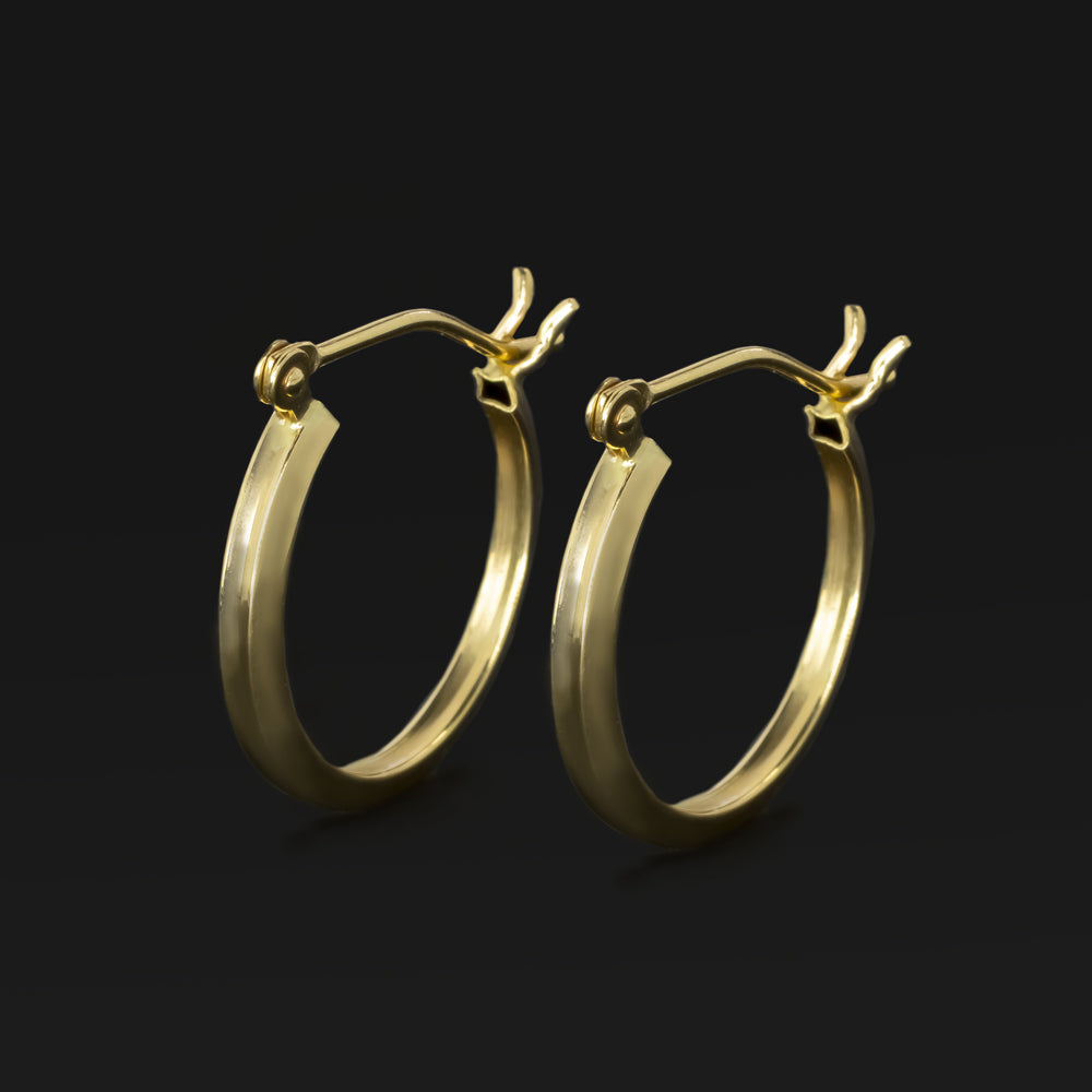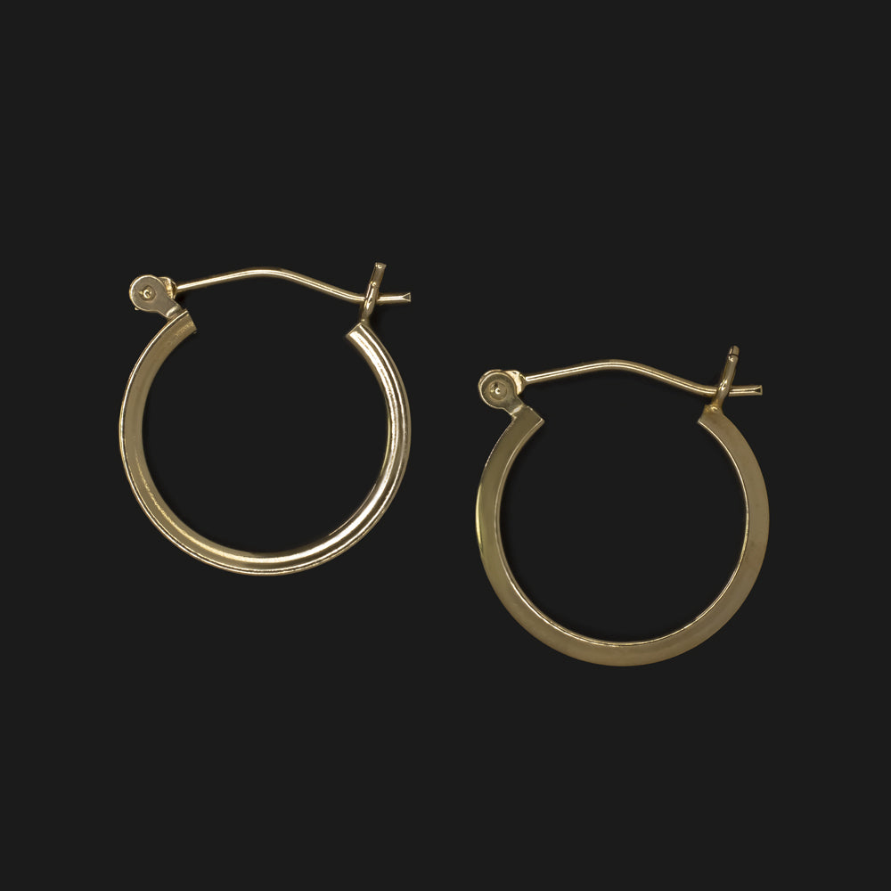 14K YELLOW GOLD SMALL HOOP EARRINGS MINIMALIST SIMPLE CLASSIC HUGGIE SQAURED OFF