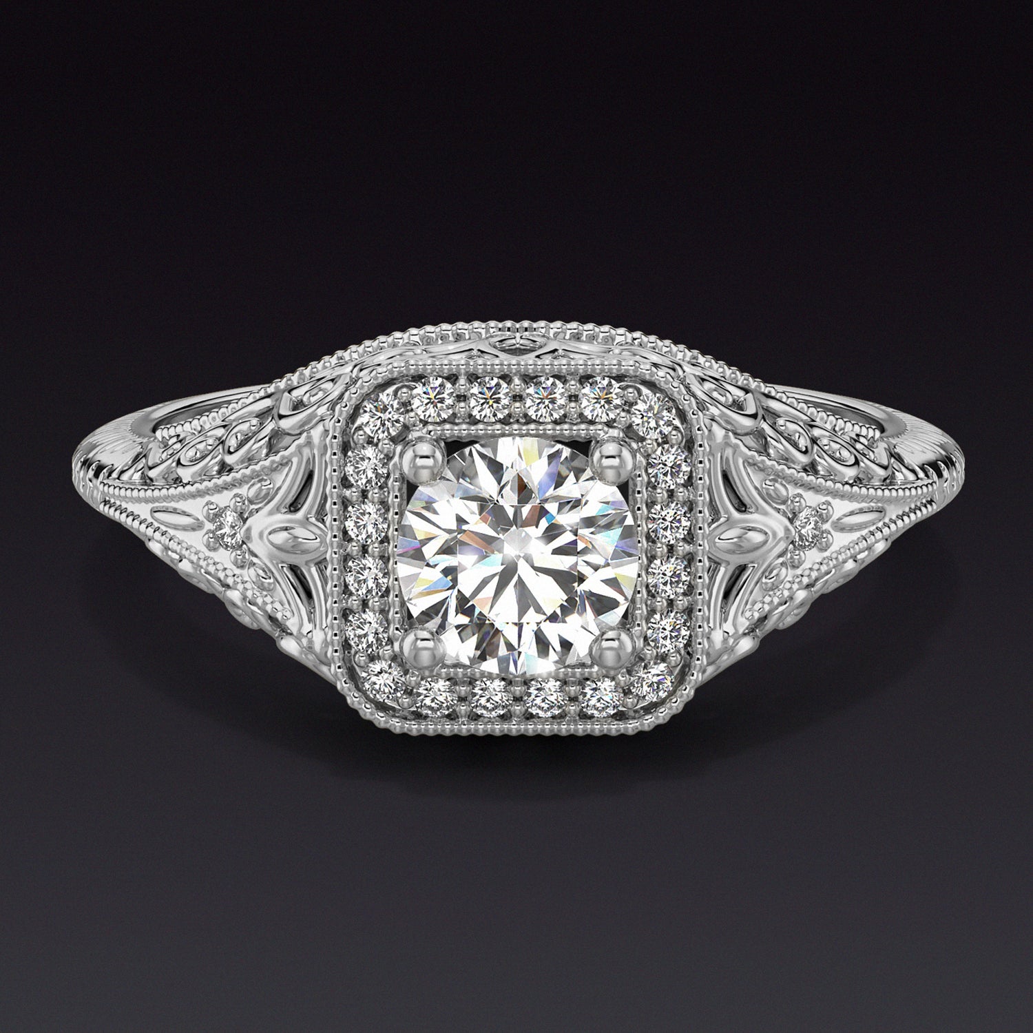 VINTAGE STYLE ROUND DIAMOND PLATINUM ENGAGEMENT RING SETTING CUSHION ENGRAVED 5M