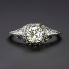 This charming vintage diamond solitaire features a glittering old European cut diamond paired with a masterfully crafted and stunningly detailed filigree setting!