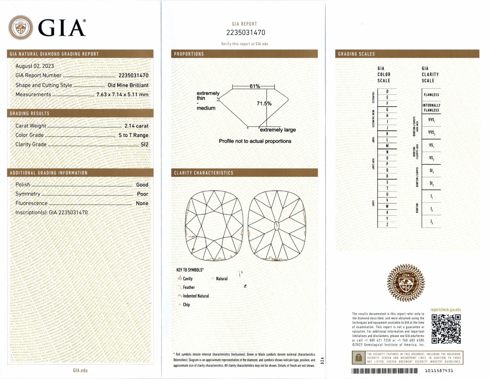 2.14ct OLD MINE CUT DIAMOND GIA CERTIFIED LOOSE NATURAL ANTIQUE CUSHION 2 CARAT