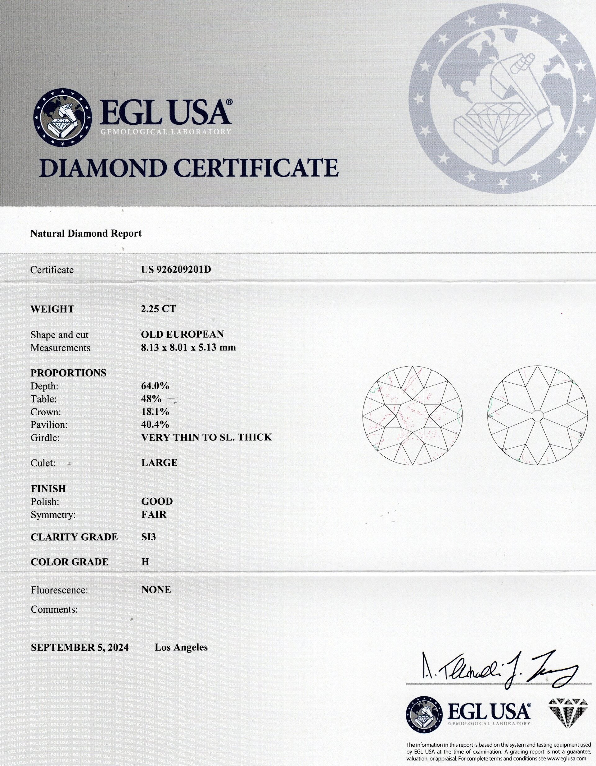 2.25ct OLD EUROPEAN CUT DIAMOND CERTIFIED H SI VINTAGE NATURAL LOOSE ESTATE