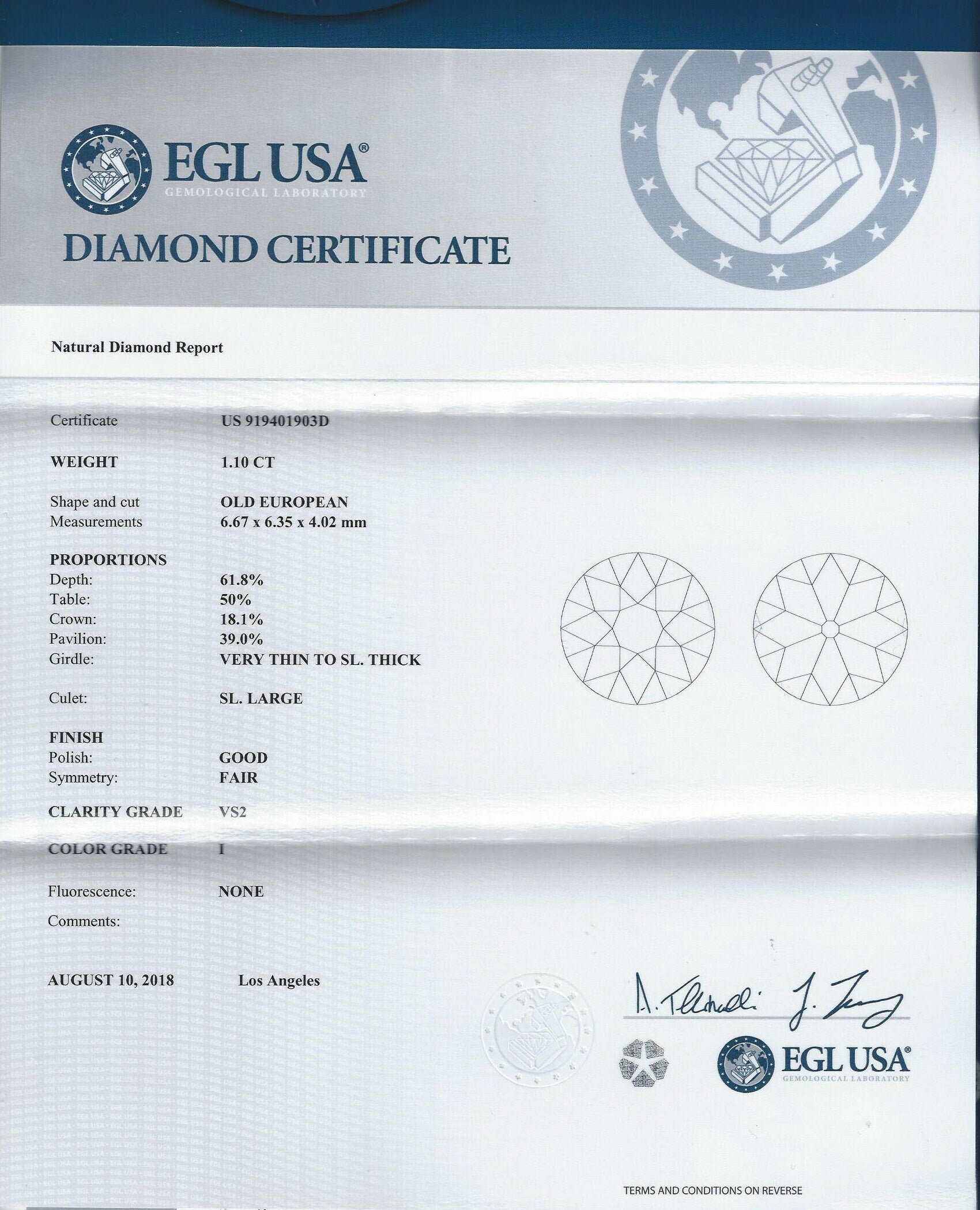 2.27ct OLD EUROPEAN CUT DIAMOND STUD EARRINGS 18k CERTIFIED H-I VS2-SI1 VINTAGE