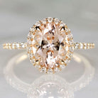 2.3c OVAL CUT HALO MORGANITE .40c DIAMOND ENGAGEMENT RING PINK ROSE GOLD NATURAL