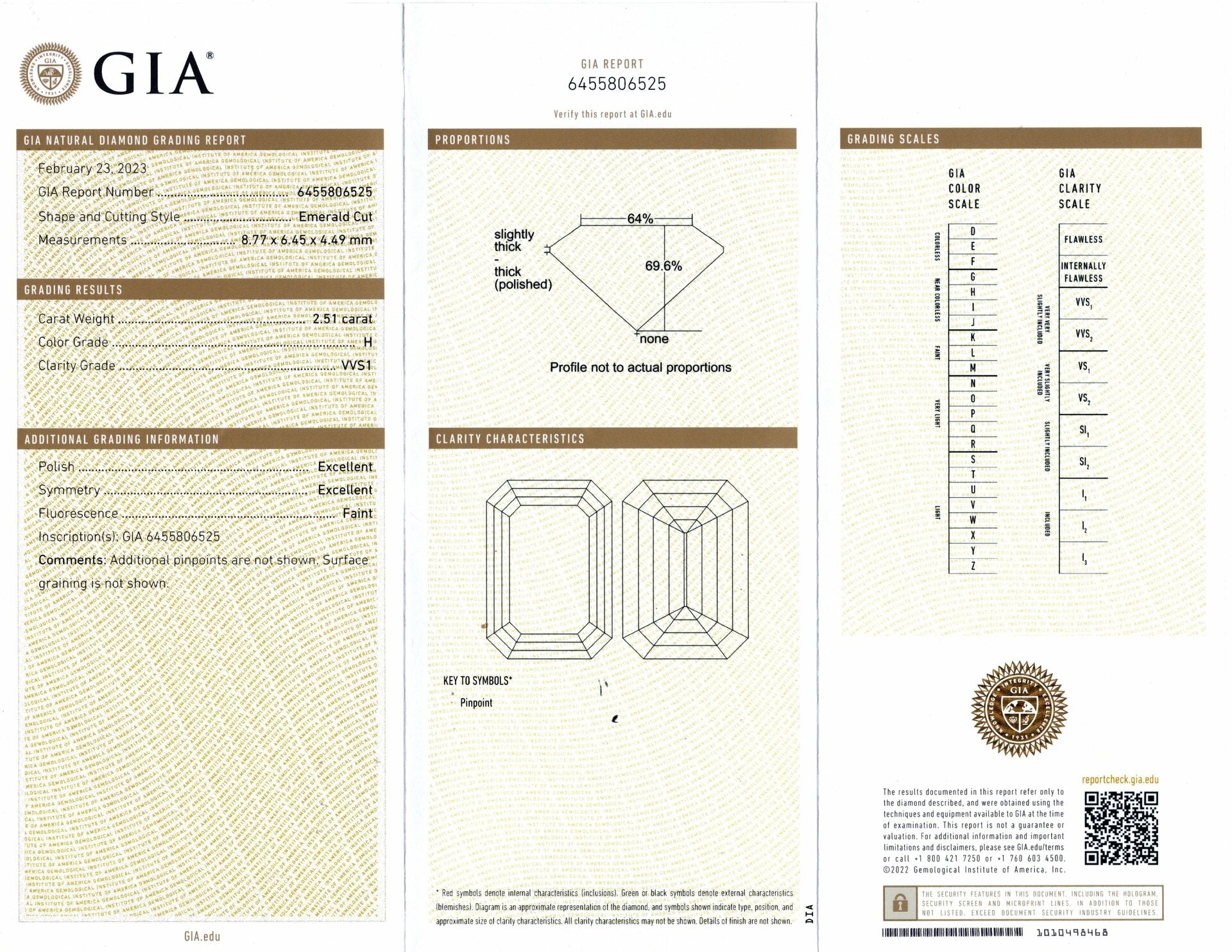 2.5 CARAT EMERALD CUT DIAMOND GIA CERTIFIED H VVS1 LOOSE NATURAL ENGAGEMENT