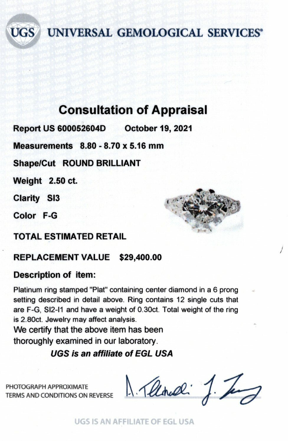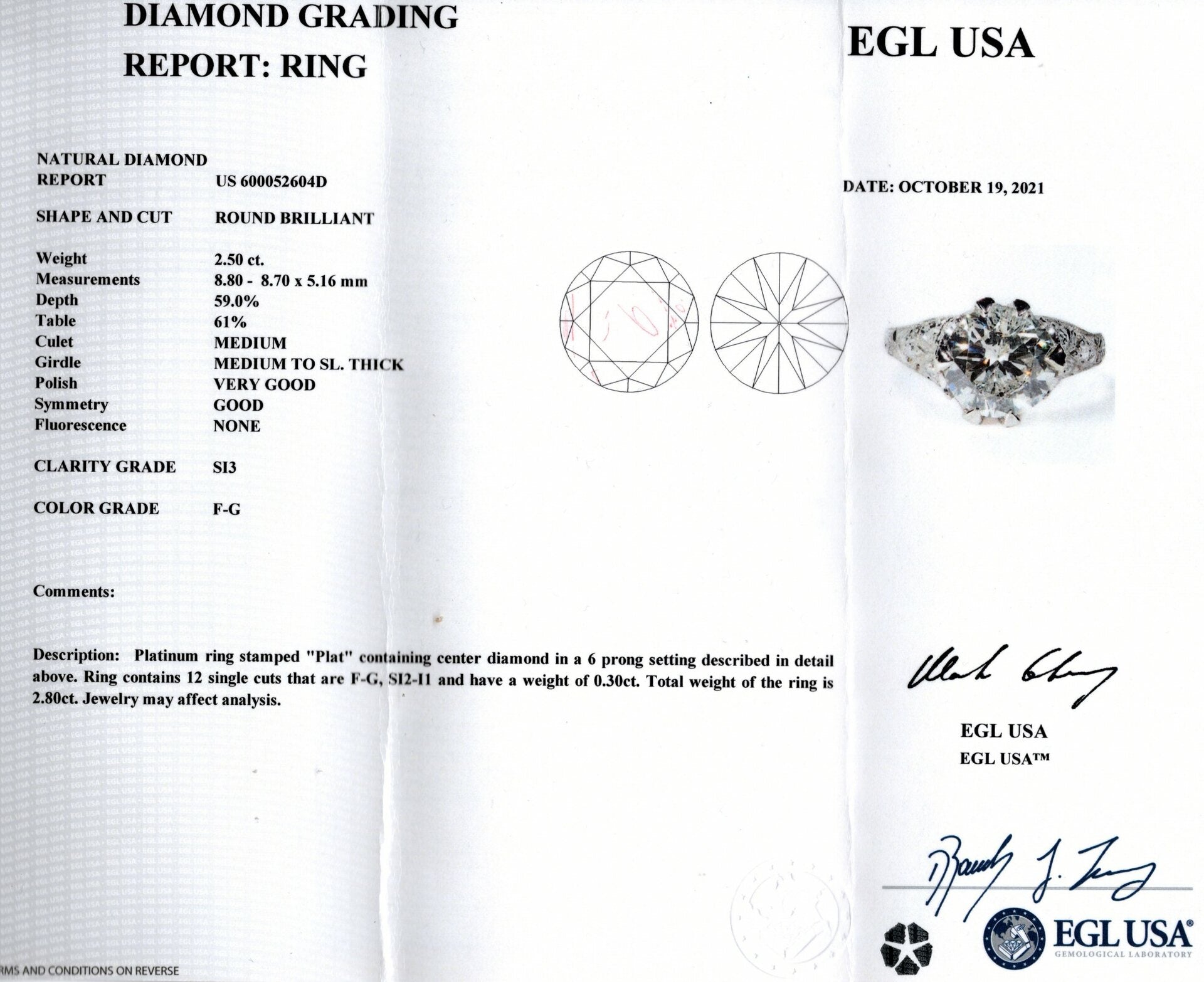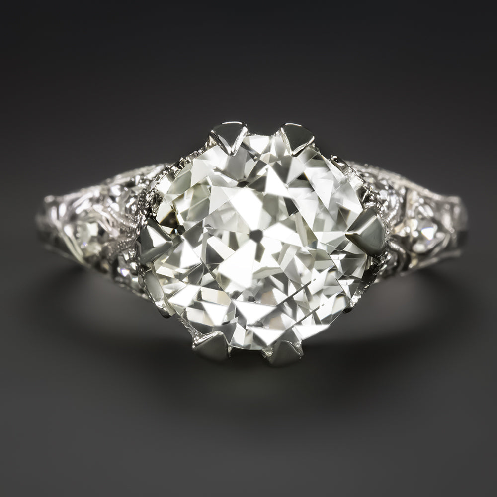 2.5 CARAT VINTAGE DIAMOND ENGAGEMENT RING CERTIFIED PLATINUM FILIGREE ROUND CUT