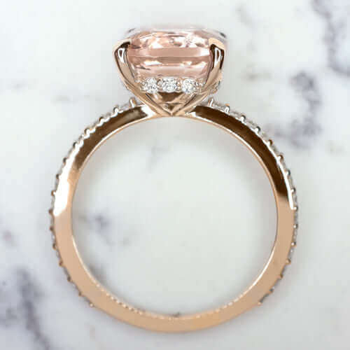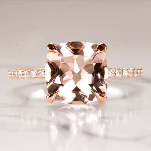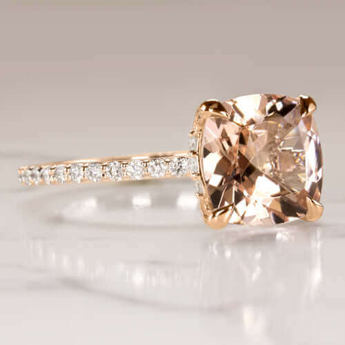 2.6c CUSHION PINK PEACH MORGANITE NATURAL DIAMOND ENGAGEMENT RING PAVE ROSE GOLD