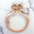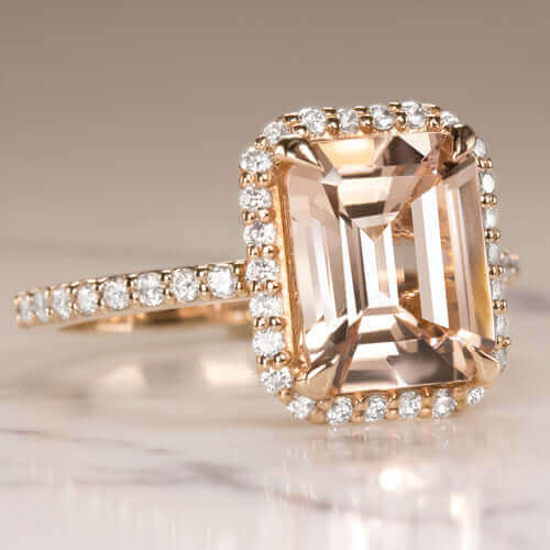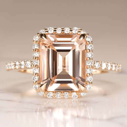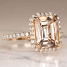 2.7ct EMERALD CUT PEACH MORGANITE 0.62c DIAMOND ENGAGEMENT RING HALO ROSE GOLD