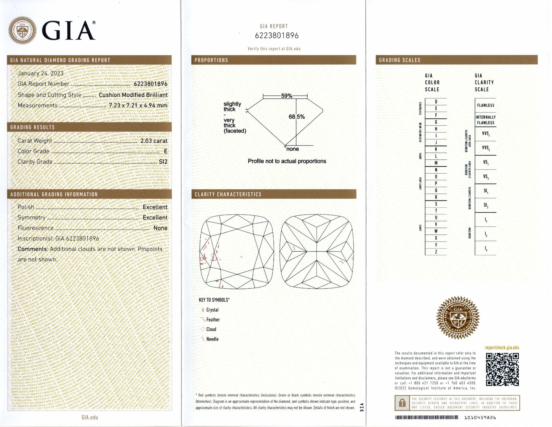 2 CARAT CUSHION BRILLIANT CUT DIAMOND GIA CERTIFIED E SI2 LOOSE NATURAL SQUARE
