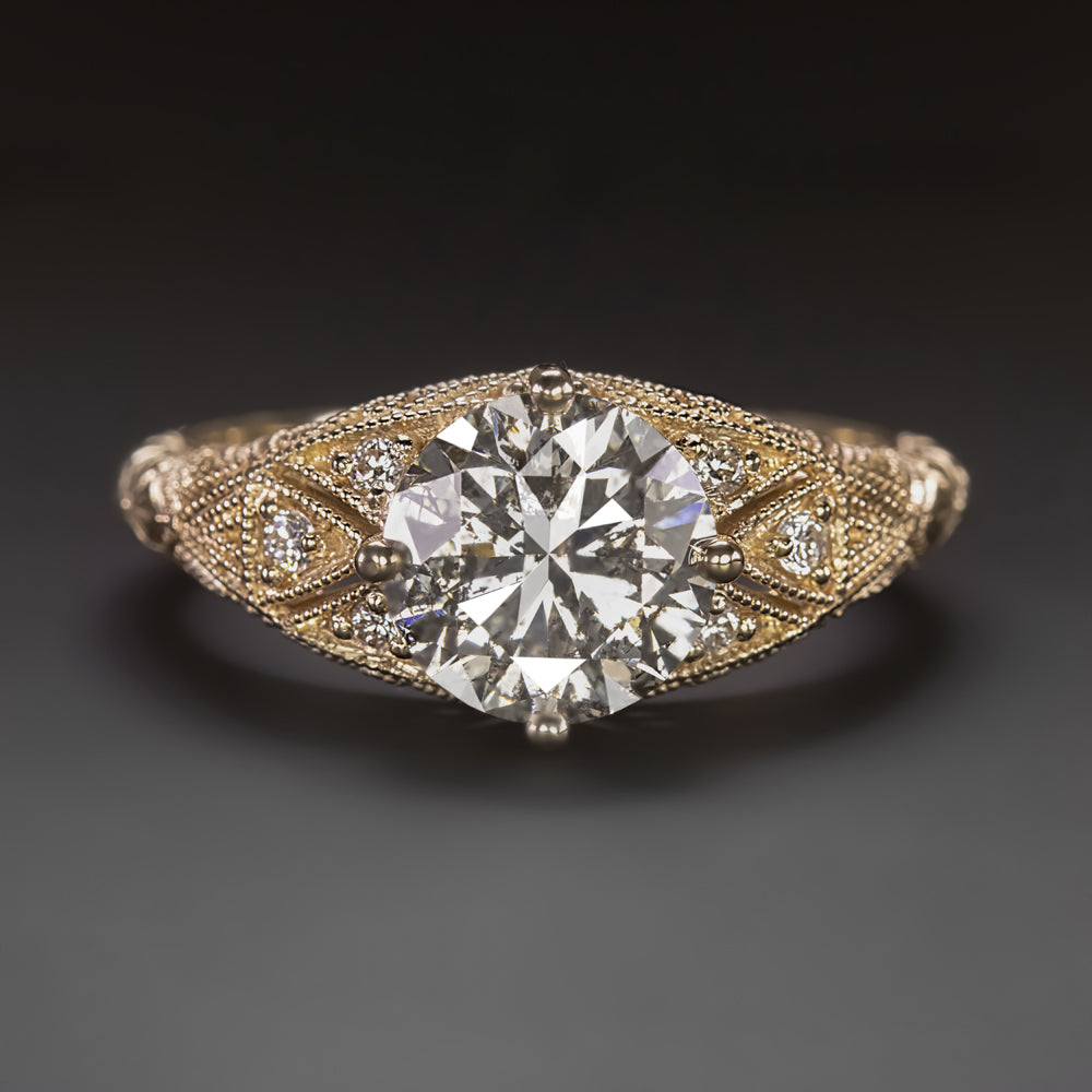 2 CARAT DIAMOND ENGAGEMENT RING VINTAGE STYLE YELLOW GOLD VERY GOOD ROUND CUT