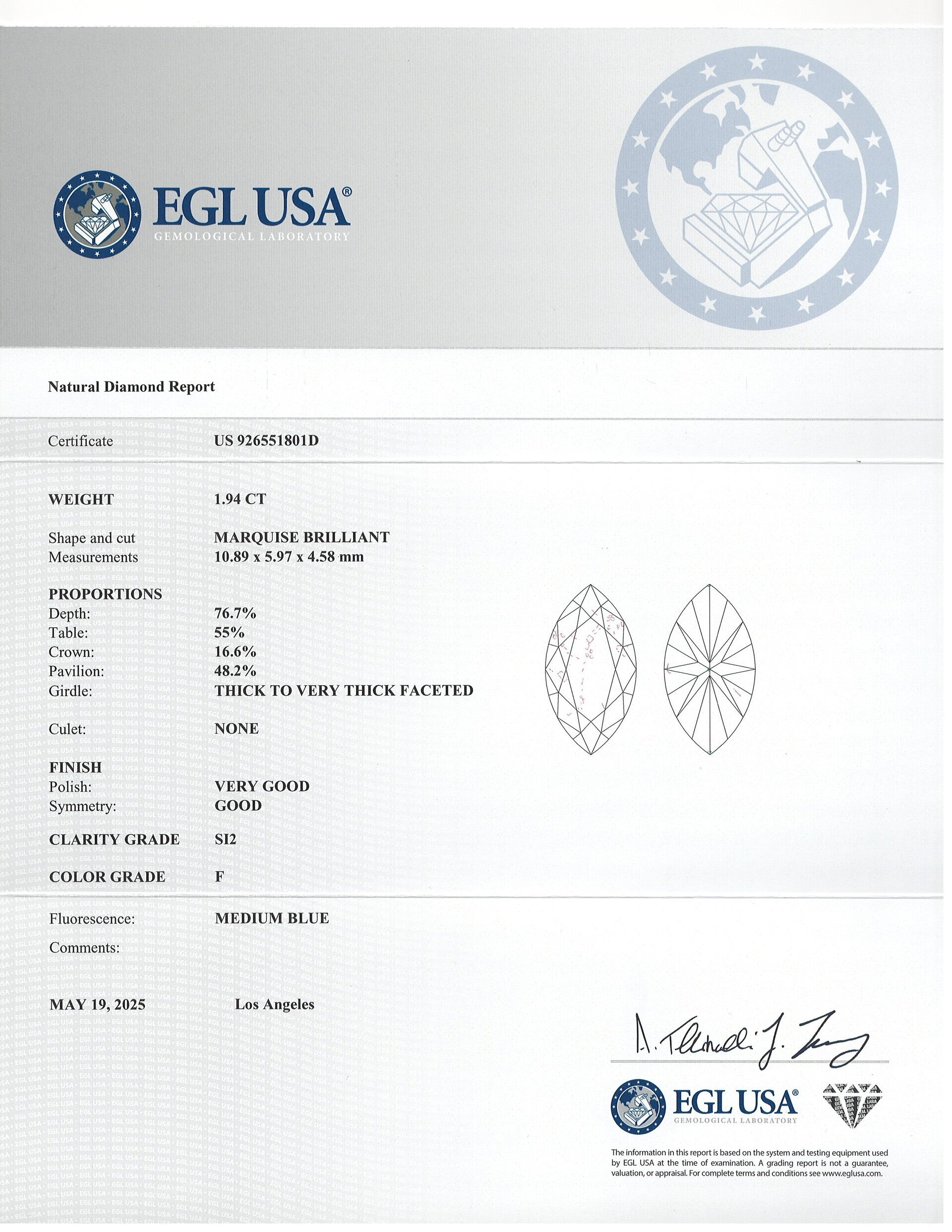 - Well executed marquise cut