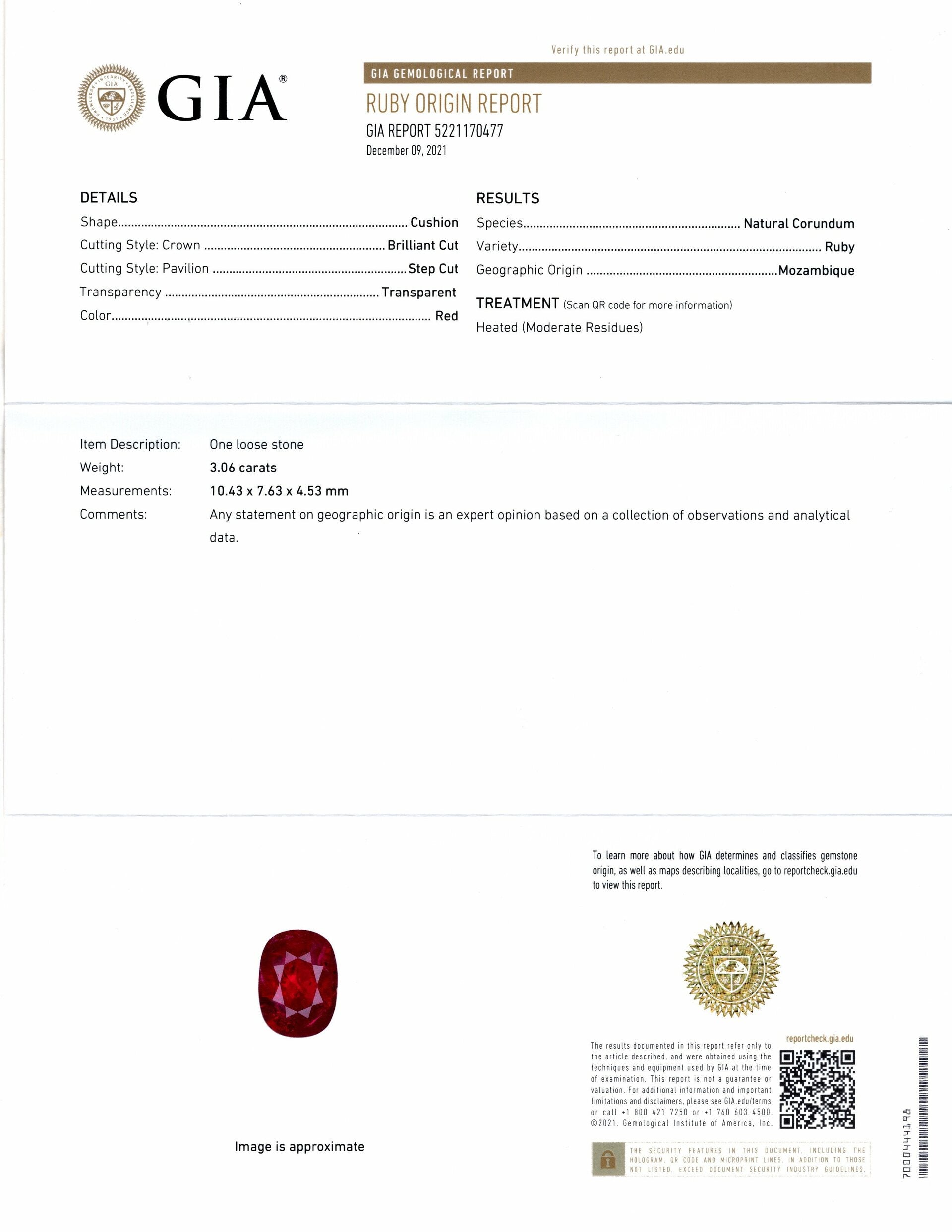 3.06ct GIA CERTIFIED CUSHION CUT RUBY RICH RED LOOSE OVAL SHAPE NATURAL 3 CARAT