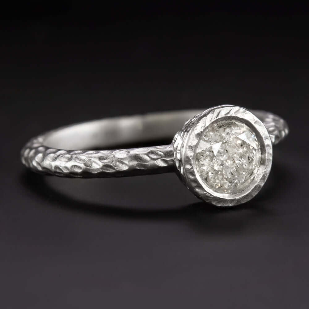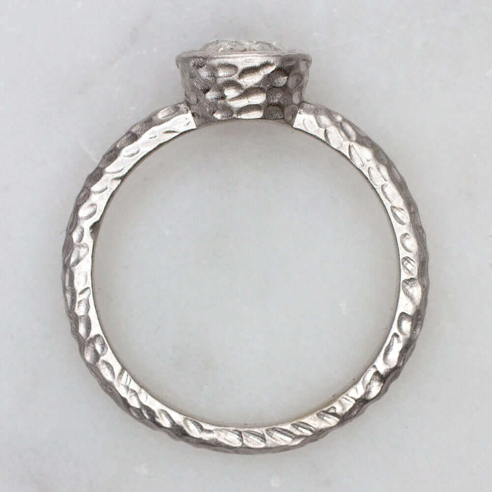 3/4 CARAT NATURAL DIAMOND RING WHITE GOLD ENGAGEMENT HAMMERED SATIN RUSTIC BEZEL