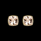 3.70ct MORGANITE STUD EARRINGS 14k GOLD BEZEL NATURAL CUSHION SHAPE CUT 8mm