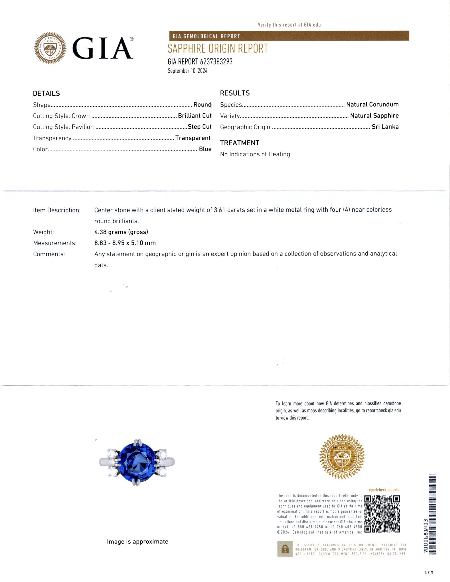 3.81c GIA CERTIFIED CEYLON SAPPHIRE DIAMOND COCKTAIL RING PLATINUM ROUND NATURAL