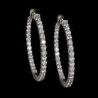 These stunning diamond hoops have a classic design and vibrant, lively sparkle! Set with 3.15 carats of lively diamonds, these earrings display eye catching sparkle, and a striking look! The elegant in and out design allows for maximum sparkle from the front.