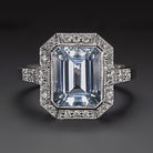 3ct AQUAMARINE DIAMOND COCKTAIL RING VINTAGE STYLE HALO WHITE GOLD EMERALD CUT