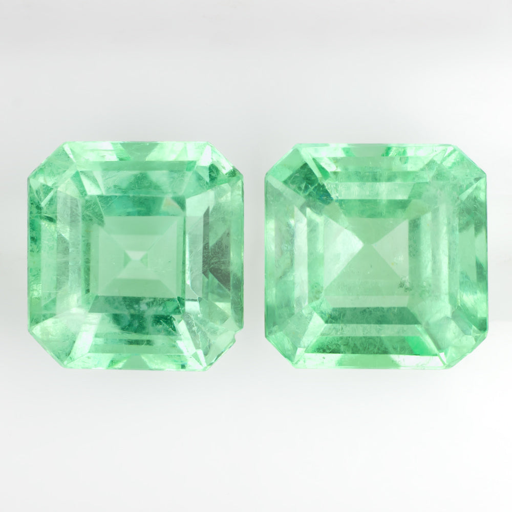 4.69ct EMERALD PAIR STUD DROP EARRINGS ASSCHER CUT SQUARE LOOSE NATURAL PASTEL