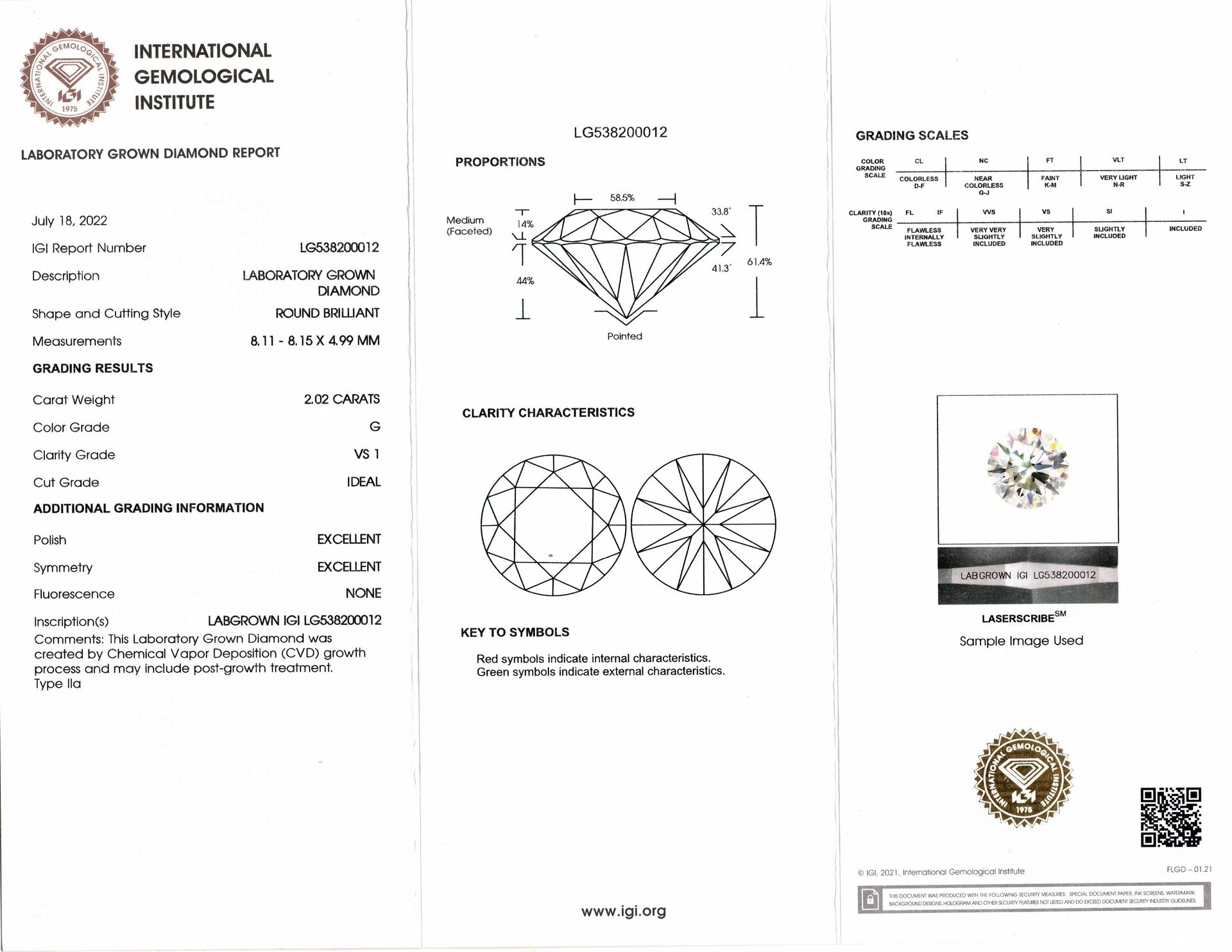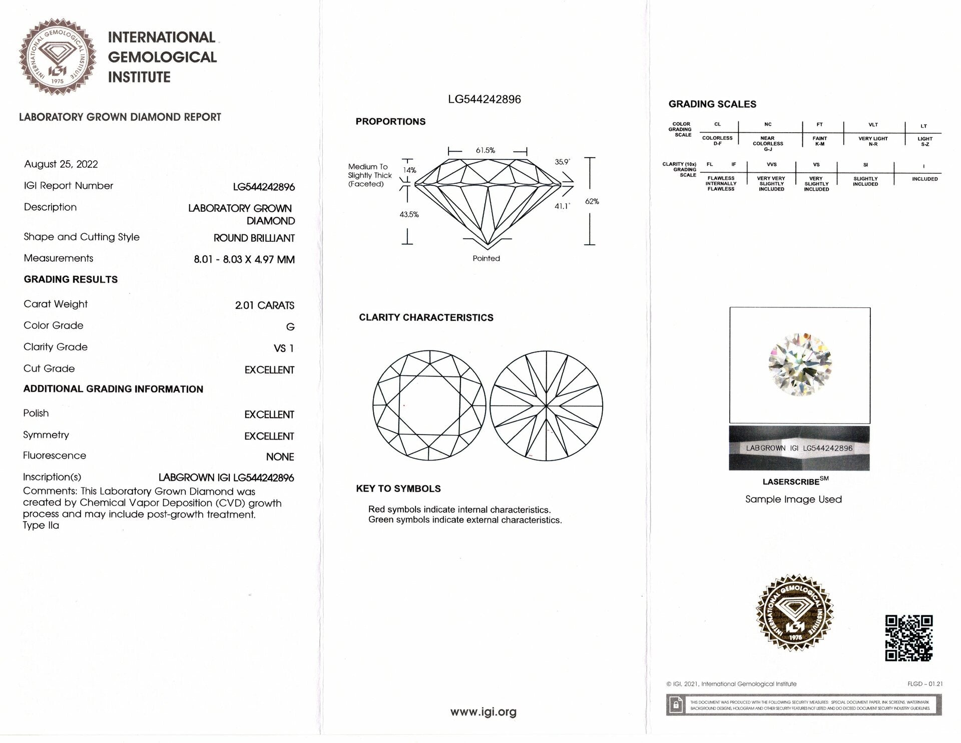 - Bright white color and excellent clarity with grades of G VS1