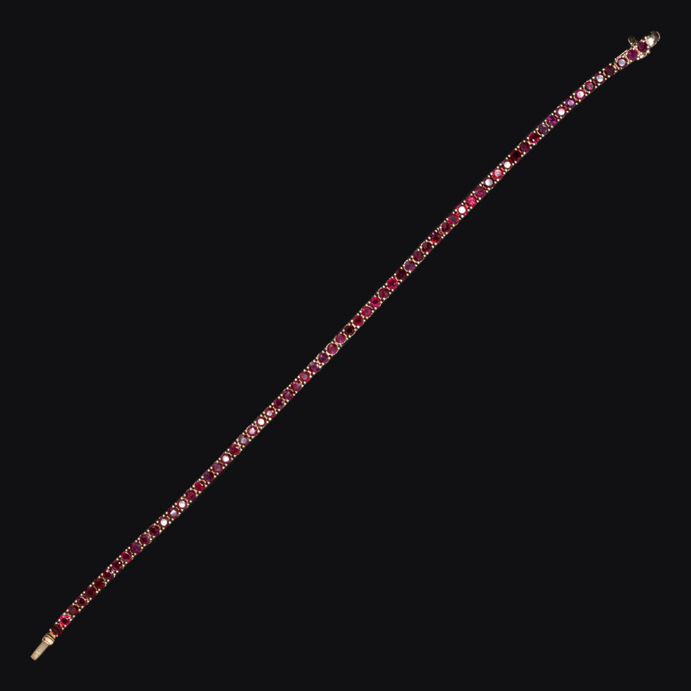 This ruby tennis bracelet has a time tested look that will always be in style!